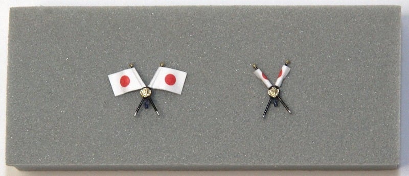 ◆ Nゲージ 機関車用 日章旗(桐花&動輪紋章 旗竿黒色) 旗開き後・旗開き前 2種セット